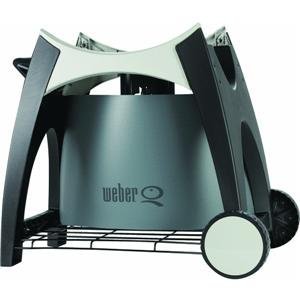 Place your Weber Q on this versatile cart and get if off of your table top or the ground. Includes a rear panel to hide a 20-pound LP Tank (tank not included) and adapter hose and a wire bottom shelf for storing tools and equipment. Fits Weber Q, Weber Q 200, Weber Q 220 and Weber Char Q grills.Available at Amazon