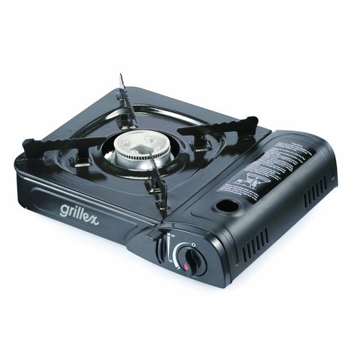 Premium Grillex Portable Butane Cookstove and Carrying Case. Easy to use single burner stove that can go anywhere. Perfect for boating, camping, tailgating, backyard patio or just about anywhere you want to cook. Electric ignition produces instant flame with a twist of the knob-no matches or lighters needed . The Grillex portable butane cookstove features high heat output (8,500 BTU/Hour) and several built-In safety features and auto safety shut off. Cookstove Dimensions: 13.7-inch length by 11-inch width by 3-1/2-inch height. Type of Fuel: Butane, 8-ounce, 227-gram.Available at Amazon